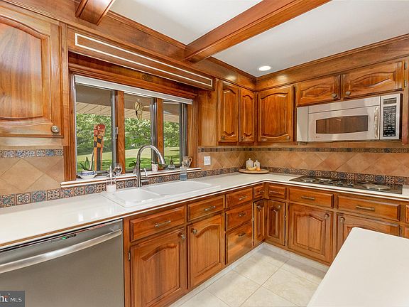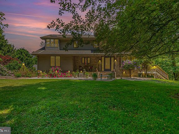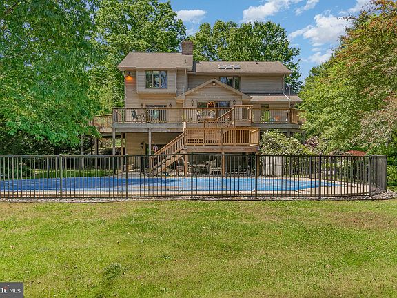 Elegance meets Privacy at this 1 of a kind property less than 4 miles to Fair Hill. Nestled away at the end of lane situated on  10.55 acres  with a tree buffer around your Oasis. The home features 3 finished level to meet your entire family desires. The main level highlights 2 bedrooms, full bathroom, 2 wood fireplaces, hardwood flooring, a storybook family with a floating staircase. Also on main level is a lovely kitchen with seating  connecting to your dining area which leads you to a wrap deck with views of your property, inground pool and giving over 1,200 sqft of outdoor space . Owners level provides you with 2 balconies overlooking your family room and then you have your private owners suite with includes a walk in closet, attached bathroom with jacuzzi tub & shower. Walkout level provides endless possibilities with a charming living room, full bathroom, office/In-law suite, 2 walk in closets, Kitchenette and storage area.  Also you have a Brick 4 car garage which includes a full bathroom, wood stove, gas furnace , kitchen cabinets for storage and then you have a unfinished apartment with plumbing in place. Exterior of home features a 40' inground pool , multiple patio's , covered front porch & 10.55 acres with a creek. Some extra home features are wood interior doors, pocket doors, wet bar, porcelain knobs, cedar closet, skylights throughout and  Circular driveway. Please No drive by's - Don't access lane unless you have an appointment - small children at play