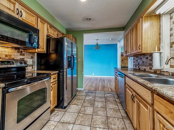 Buyer was furloughed 5 days before closing, so back on the market. Tenants are out, improvements made, and property deep-cleaned. Brand new roof & gutters! Ranch-style home with vinyl siding on large flat fenced lot in great Littleton location. Finished sq footage is actually larger than recorded in Arap Co Public Records. Garage was remodeled into MBR; back patio enclosed and now large family room with wood-burning fireplace, bar area, and cedar closet. Slate entry. Kitchen & baths have had some remodeling. Nice hickory cabinetry in kitchen. SS appliances and microwave stay. Beautiful hardwood floors in entry, LR, DR, hallway and original bedrooms. Ceiling fan in several rooms. Outdoor storage shed on foundation. Large covered patio. Swamp cooler. Very convenient to Belleview, restaurants, grocery, shopping. Some cosmetic upgrades will make it beautiful! Brand new interior paint and light fixtures, plus other updating in progress (including brown paneling torn out of MBR.