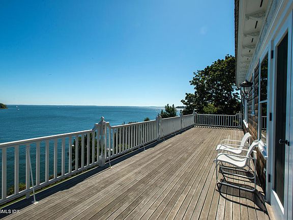 Spectacular views across Long Island Sound with a view of a bucolic island in the foreground from this marvelous, totally reconstructed Victorian on exceptional 2 acre property with major trees and level lawns. Wide porte cochere at entrance; superb decorating throughout; lovely floors and detailing; wonderful solarium which becomes screened in porch; luxurious master suite opens to balcony. Lower level room can be used as extra bedroom & bath. Amazing boathouse at water's edge and superb renovated staff carriage house - 3 BR, 2 Baths, large living room/dining room, kitchen and laundry, Unique and special surrounded by other major houses in sought after waterfront area.