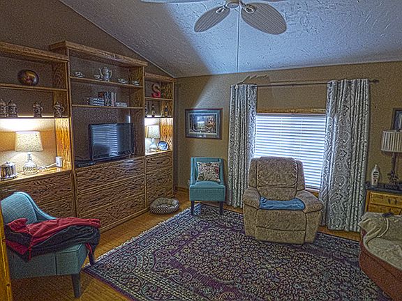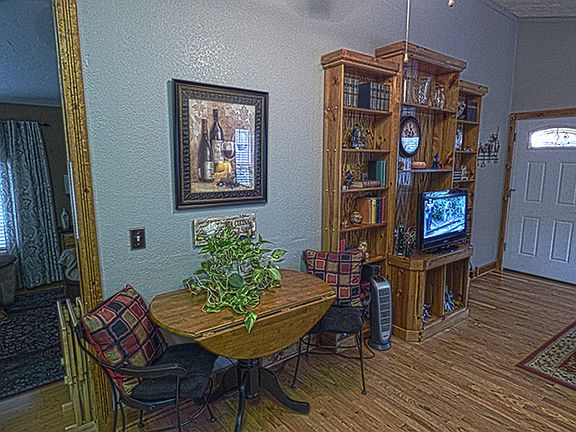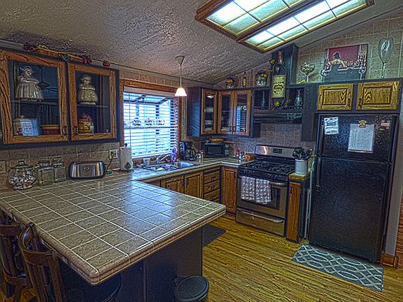 This spacious, beautiful home is truly something special! 1030 total SqFt with the cozy, step down den! You’ll appreciate the care and attention to detail! REAL hardwood floors throughout! The kitchen offers beautifully tiled counters and walls, updated appliances, garden window and more! There’s lots of storage built in throughout the home. The master has a large closet with custom shelving. The lovely bathroom has floor to ceiling storage. Central AC. Upgrades are too numerous to list! Gorgeous private outdoor space with a blend of grass, open space and landscaping. Large deck with pergola. Single car garage and 2nd parking space. Truly a MUST SEE! Lot Rent: 656/mo | Includes: None