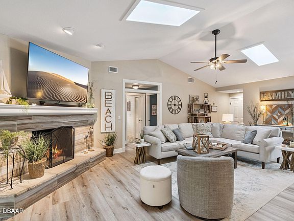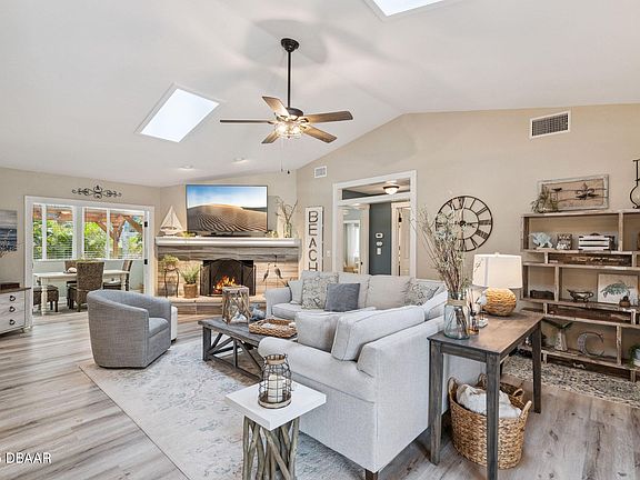 Under contract-accepting backup offers. Location, Location, Location! Walk to the Beach - Updated Pool Home on Oversized Lot! Discover your dream beachside retreat in this beautifully updated and well-loved single-level pool home, ideally located within walking distance to the beach! Nestled on an oversized 95x125 lot with a private backyard oasis, this property combines modern luxury, comfort, and coastal charm. Featuring 3 spacious bedrooms, 2 bathrooms, and a 2-car garage, this home offers 2,288 square feet of living space with a split floor plan and a refinished wood-burning fireplace for cozy evenings. This home has been completely remodeled with high-end finishes and thoughtful updates throughout including: New Roof & Gutters (2021) New Saltwater Pool Heater & Travertine Deck (2021), New Chef's Kitchen (2023), New Bathrooms (2022), New Tile Flooring (2022), New Masonite Impact Doors & New A/C (2021), New Water Heater (2018), New Garage Flooring (2021), New Blinds (2021), New Irrigation System on Private Well (2021,) Custom Cabinets Throughout (2021), New Ceilings & Skylights (2021), and Hurricane Shutters. The bright, open kitchen is a showstopper, complete with custom cabinetry, quartz countertops, and new high-end LG & Kitchen Aid appliances (dishwasher, microwave, oven, refrigerator/freezer). Perfectly positioned to overlook the dining and living areas, this space is ideal for entertaining. The primary suite offers a spacious walk-in closet and a luxurious en-suite bath with new tile and modern finishes. Two additional bedrooms share a beautifully remodeled guest bath, making this home ideal for family and guests alike. Step outside to your sparkling saltwater pool, surrounded by travertine decking and a pergola, the perfect space to relax, entertain, and soak up the Florida sunshine. The oversized private yard offers plenty of room for outdoor living and gardening. Additional features include inside laundry, City water & septic, Tile flooring throughout, Open, light-filled living spaces, and a modern "coastal chic" design. This home truly defines modern beachside living, where no detail has been overlooked. Call today to schedule your private tour and start living your dream in the ultimate Home Sweet Home Beach House!