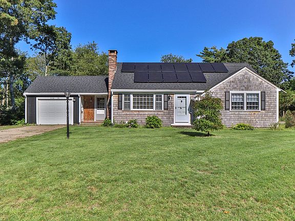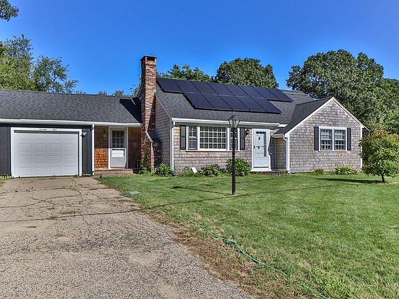 Welcome to this charming Cape house! This home offers a wonderful combination of comfort and location and is an ideal choice for a homeowner or investor. This single family Cape Cod style home offers 1204 square feet of living space with a 3rd bedroom on the second floor. Many upgrades include a newly remodeled bathroom, new roof, new cedar siding, newly insulation, many new trims and gutters, new electrical panel, and solar panels. There is an opportunity for the new owner to expand age living space by adding a 2nd full bath or dormers and create a spacious studio unit! There is an attached garage and 3-season enclosed 40 foot patio with electrical outlets, gleaming hardwood floors throughout, wood burning fireplace, full-size basement, and large back and side yards - a perfect space for organic gardening and entertaining! The property is located in the highly sought after Captain's Village and close to shopping, churches and Yarmouth beaches! Additional information is available on request. Solar panels to convey with the property, and both parties will cooperate in the transfer of the existing contract.''