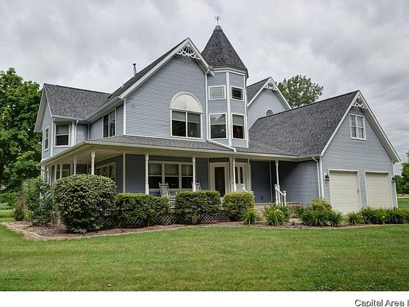 Meticulously maintained beautiful country home on 4 acres in Chatham Schools offers 30x50 pole barn w concrete floor! Amazing location off Woodside Rd snuggled next to wooded area. New HW flooring in LR & DR, new tile flooring in kitchen, amazing addition (29x27) w 18 ft ceilings! 3 BRs on UL, updated guest bath, wrap around porch, stone patio, firepit, new roof, heated garage, new windows in large master suite, bonus room over garage (4th BR but no closet). Unfinished LL, main HVAC new in 2015, drop zone, fenced paddock w garden, CWLP water, MUST SEE!!