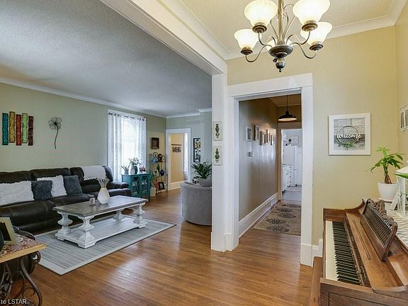 This Beautiful 2-Storey Victorian Style home is a must see! Fantastic cozy enclosed front porch with loads of room to lounge and enjoy. Through the front door you will notice hardwood flooring throughout the main level, continuing up the stairs into the hallway and into 2 of the bedrooms. This is truly a move-in ready home waiting for your own personal touches. Kitchen cabinets have been painted and stunning new granite countertops and hardware installed. Upstairs has 3 Bedrooms, 2 of them have spacious walk-in closets. Upstairs has a beautiful bright 4-piece bathroom and the basement has a spacious 2-piece updated bathroom. Windows replaced(2013), furnace(2012), Shingles approximately 9 years old. Minutes from Pinafore Park and the Hospital, tons of biking/walking trails with direct access to Sunset Drive, which takes you to Port Stanley (15min). Don't miss out on this Beauty full of Victorian charm throughout!