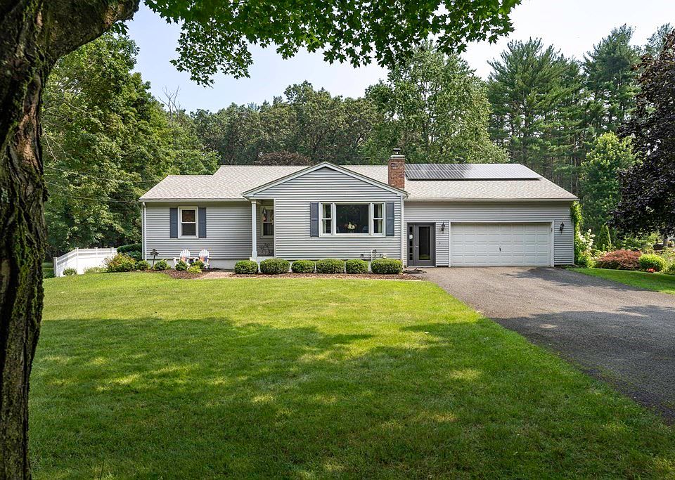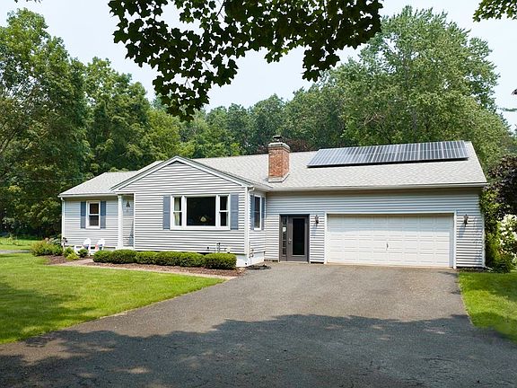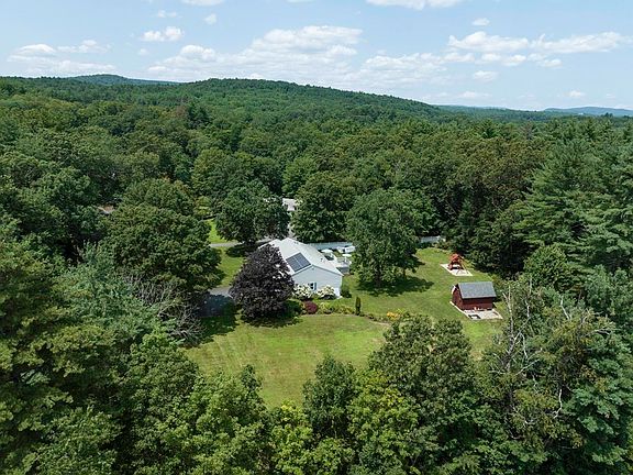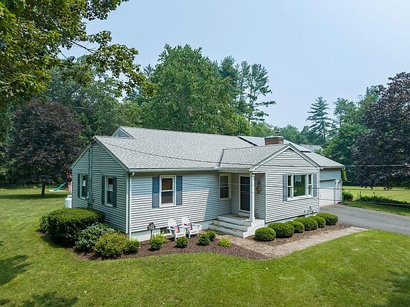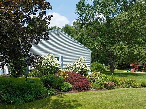 Single-level living without compromise. A cathedral family room w/pellet stove, hardwood floors and good-sized bedrooms give this contemporary ranch home an exceptionally solid, spacious and well-built feel. Set amidst large park-like grounds with encompassing garden beds & specimen trees, this home offers comfort and untroubled vistas for all 4 seasons. There are 3 large bedrooms, including a primary with adjacent, remodeled, full bath, one additional office/guest bedroom, & two large finished rooms in the lower level. The home also has a dining room and elegant living room with fireplace/pellet stove. There is a 2nd full bath, central a/c, & a mud room. Off the family room is a large deck offering a serene view and step down to flower gardens, a generous play structure & handsome storage building. A quick drive to town, Look Park, Musante Beach, schools and shopping, yet essentially rural in character. Owned solar panels and generator. OPEN HOUSE ON 8/11,4:30-6 P.M. & 8/12, 12-2 PM.