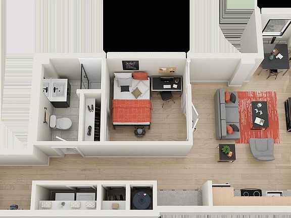 Daymark is doing things differently. A designer has already chosen an urban palate for you. The modern-industrial shipyard vibe of the interiors embraces the building's proximity to the coast and the history of Portland. The sleek designs of stainless-steel kitchen appliances by Blomberg enable exceptional green living & high-performance including a compact washer and ventless heat pump dryer. Stunning kitchen cabinetry crafted from top-quality materials by Viva and a tile backsplash completes the look. A floating vanity, surround tile shower, and tile flooring in the bathroom add elegance. High performance Intus windows, draper window shades and exceptional design lighting by Quorum throughout show the commitment to high performance and design.