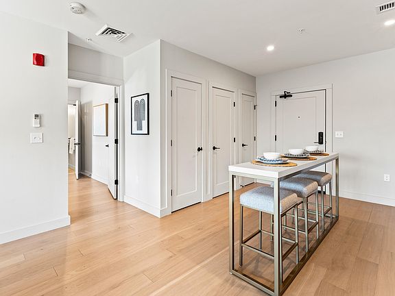 This sunny and spacious 1 bed / 1 bath home at the newly built Daymark condominium is in pristine condition and offers a central on-peninsula location with incredible amenities and easy garage parking. Featuring a clean and modern design, the open living plan includes a sleek kitchen outfitted with stainless steel appliances, quartz countertops and two-toned cabinetry. The bright bedroom has a walk-in closet for ample storage, and the contemporary bathroom features a floating vanity and walk-in shower. This home offers a ductless mini split system for heating and cooling, in-unit washer & dryer and custom window treatments. For its careful attention to eco-friendly design, the building has achieved Pearl Certification for energy efficiency.