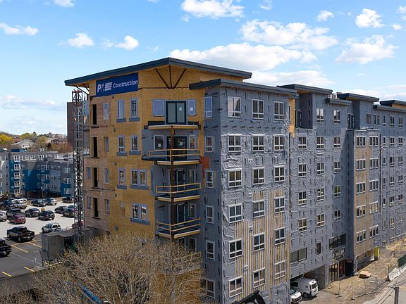 This 1 bedroom, 1.5 bathroom unit has a large walk-in closet, an open concept living area, a kitchen with island, and Munjoy Hill & Back Cove views.