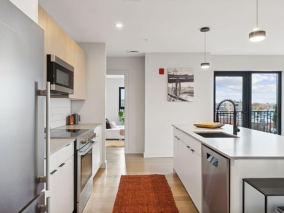 Welcome to your Back Cove view. Life at Daymark is about balance, where you truly can have it all. With a central location on Peninsula, you won't worry about commute times. Park in the secured attached garage, then forget about the car until you want to explore up the coast. With a 98 Walk Score, no car needed for daily errands. Conveniently, store your bike in the secure ground floor Bike Room. At Daymark you will always feel comfortable & breathe easy with top rated heating/cooling & indoor air filtration system in this Pearl Certified New Construction. The inviting common spaces & Daymark Slack channel create community connection with your neighbors, so you won't feel new in town for long. Located in a vibrant urban setting full of city culture & conveniences like award winning restaurants, the Old Port, the waterfront, breweries, Whole Foods, Traders Joes, co-working & art spaces, community gardens, parks, food trucks, rooftop bars, theaters, shops, & tons of events. Nature is close by too, from beaches, to mountains, marshes, rivers, woods, lakes, etc. For peace & quiet, head up to this fifth floor oasis overlooking the City skyline & Back Cove with breathtaking westerly sunset views from the private balcony. Your personal style will shine in the sleek living space with bright natural light, tall ceilings, clean lines, open kitchen, highly rated Viva cabinets, quartz countertops, European appliances. Daymark gives you sustainable & beautiful Portland living. The perfect balance.