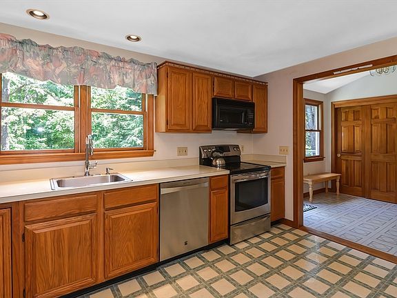 Spacious home situated on a level, tree-lined yard near interstate and area amenities. The front door opens to the foyer and a front to back living room with a fireplace. A large, eat-in kitchen leads to a sizable mudroom with laundry and access to the back deck overlooking a wooded lot. There is a 3-season porch off the mudroom and a full bathroom. The second floor offers three good-sized bedrooms all with ceiling fans. A walk-out basement with plenty of storage.