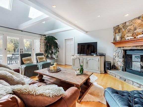 This quintessential gambrel home will check off all the boxes. Starting with the front entry farmers porch, lush professional landscape, completely renovated sport/tennis court, large extended back deck overlooking the 1.97 acre FLAT lot. All this settled into the much sought-after Claypit Hill neighborhood. Enjoy your evenings cooking in the large oversized kitchen with top of the line appliances, extended island and eat in breakfast nook. The kitchen open ups to the oversized family room with fireplace, large loft space perfect for playroom or office. The first floor also offers a formal dining, formal living overlooking the well-manicured back yard. The second floor is bright and sunny with wall-to-wall hardwood floors, three well-proportioned bedrooms and two full baths as well as a Master Bed and Bath suite with a balcony overlooking the grounds. Move fast and be in for the holidays!