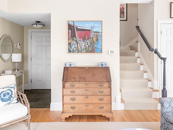 A rare offering in Falmouth's Tidewater Village, this sun-filled luxury townhouse is turnkey and loaded with charm and amenities. Enjoy the convenience of its quiet location, within walking distance to shops and restaurants, Mackworth Island and Gilsland Farm, and still only a 5 minute drive to Portland. This two-story, 2 bedroom, 2.5 bath stunner has secure elevator access and is the only unit that includes TWO deeded garage bays with plenty of overhead storage. High end appliances include a Thermador dishwasher, JennAir gas range & refrigerator and Bosch washer & dryer. It also features two ensuites, a gas fireplace, granite countertops, a newly built custom walk-in closet in the primary bedroom, as well as plantation shutters, Hunter Douglas blinds, and Hubbardton Forge lighting throughout. Don't miss this opportunity to enjoy an upscale, virtually maintenance-free lifestyle, right in the heart of Falmouth.