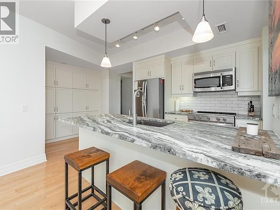 Built by Charlesfort, the Victoria model offers everything from 2 amazing bedrooms and a cozy family room to multiple balconies. The beautiful hardwood floors will take you throughout, visiting the fully renovated kitchen plus pantry and desk area, into both bedrooms, dining room and living room. The updated 2 full bathrooms are equipped with tile flooring. At approximately 1,150 square feet combined with floor to ceiling windows, the Victoria genuinely has an executive feeling as you experience the unit. Furthermore, the unit features in unit laundry, custom made blinds, high-end finishes, and amazing views. Minutes from the Westboro shops, McKellar park, and future LRT stop, this unit has the perfect location. Explore the full fitness centre, rooftop deck with amazing water views, and party room. A true turn key magnificent unit. (id:46797) 2022-10-29