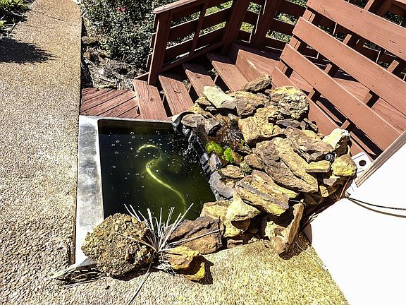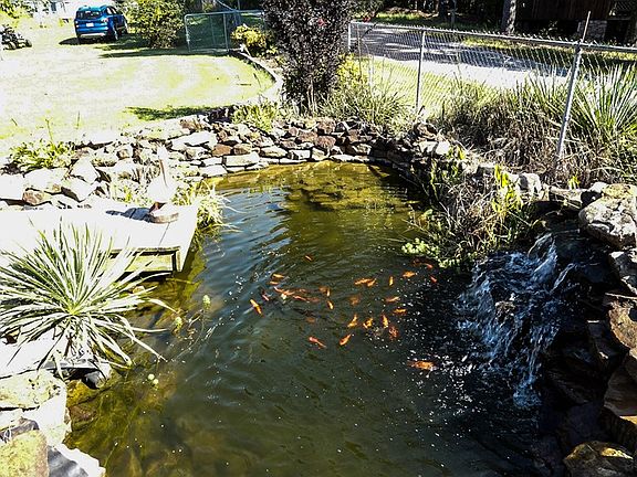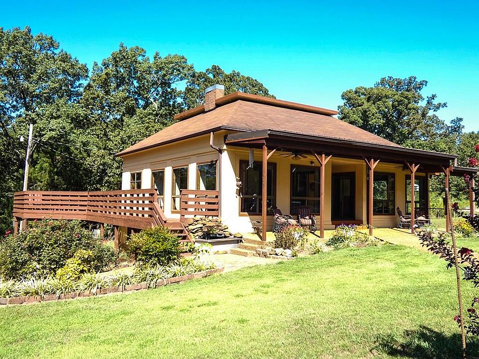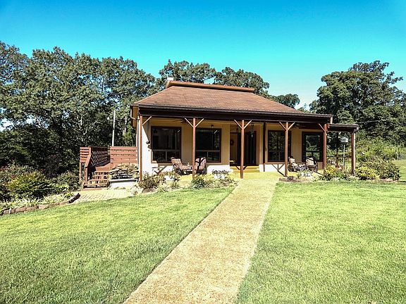 Very unique home! I can say I believe this is one of the most solid construction homes I have ever been in. Walls and floors are thick concrete construction. (It's been said the man built the home like a military bunker and to land a helicopter on roof) Large great room, 3 bedrooms , 2.5 baths, game room in and kitchenette in basement, koi fish pond, fenced yard, large deck for entertainment, laundry on main floor and in basement. additional lot with septic and water, Home is connected to public water but also has a well.HOME HAS BEEN RECENTLY UPDATED, Paris Landing State Park & Marina is across the street. Natural gas and WK&T fiber internet at street.
