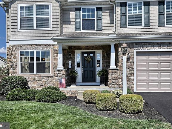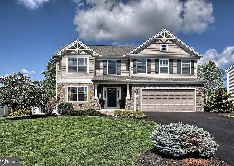 Don't miss this opportunity to own a beautiful, well-maintained home in the desirable Stone Knoll neighborhood in the Palmyra Area School District. This home sits on a level .3-acre lot landscaped with manicured flower beds. The covered front porch welcomes you into the two-story foyer with gleaming oak hardwood floors that carry throughout most of the main living areas. The formal dining room provides an ideal space for everyday family dinners and special occasions. The large eat-in kitchen with center island, ceramic tile backsplash and upgraded cabinetry with pull-out shelves opens to the family room featuring a wall of windows and a gas fireplace. Sliding glass doors lead to the paver patio with hardscaping and fenced rear yard creating a perfect outdoor entertainment area and a safe play area for children and pets. The second floor offers three newly-painted bedrooms and an owner's suite with walk-in closet and a bathroom with a double-sink vanity. Completing the second floor is a hall bathroom and centrally-located laundry room. A full, unfinished basement with insulated foundation walls provides a blank slate for customizing your own additional living space. Newer carpet and an active radon mitigation system make this home move-in ready. Close to Hershey Medical Center, Hershey amenities, schools, restaurants, shopping and major routes.