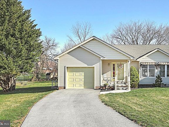 Move in ready one level living at it's best! This 2-bedroom, 2-bath home has many extras: walk-in hardwood foyer, vaulted ceiling in the living room, side lights on the front door, and an oversized 19ft x 9.5 ft deck overlooking a private back yard. The primary bedroom has a private bathroom and a walk-in closet. Loads of improvements: Vinyl front porch railing, new roof in 2020, all new carpet and additional driveway blacktop in 2019, retractable awnings on front and back windows, and new handicapped shower. Affordable living on a quiet cul-de-sac.