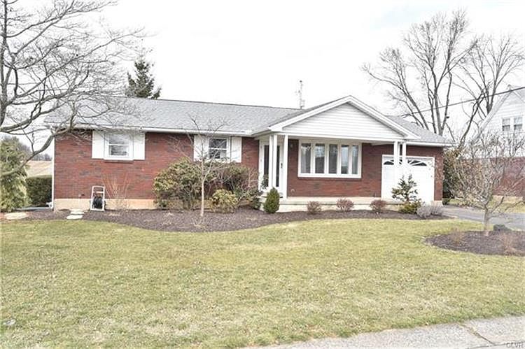 MULTIPLE OFFERS. PLEASE SUBMIT HIGHEST AND BEST OFFERS BY SATURDAY AT 6 PM. Well maintained 3 BR brick ranch in Hanover Twp. This ranch has central air conditioning and abuts a large area of not to be developed land. Beautiful patio overlooks nice sized yard with utility shed and farmland. Hardwood floors throughout the whole house, with newly installed windows sound proofed and paid for by the airport authority along with an entire air heat exchanger in the basement. Boiler is gas and in great shape. The finished basement has a large storage room and a great bar for entertaining.Don't let this one go.