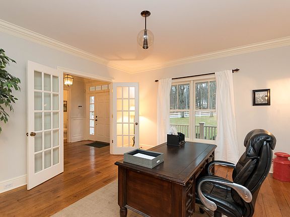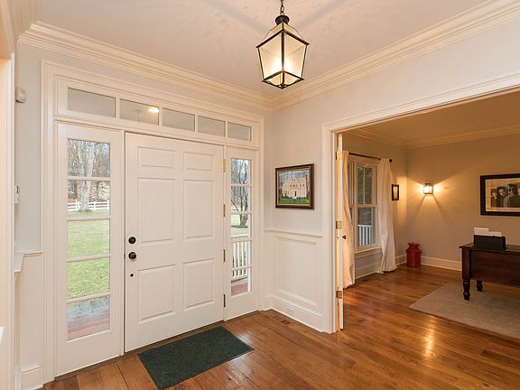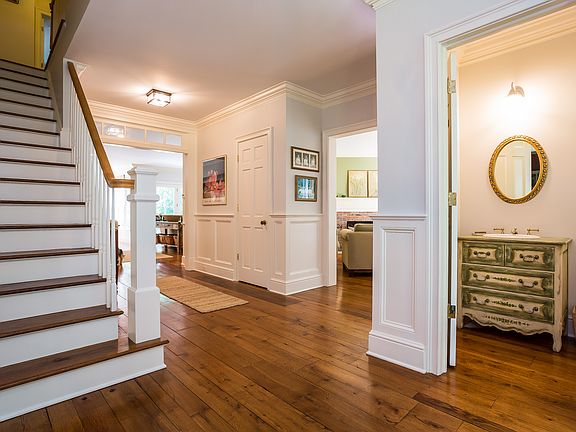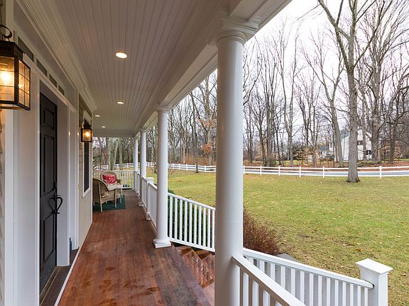 Custom built 5 bedroom colonial on beautifully landscaped, flat 2.3 acres. Upon entering admire the random width, oak beam floors. Well thought out floor plan with all bedrooms on the second floor including a bonus room. Finished, lower level recreation room and finished third floor provides ample space for everyone to spread out. Enjoy sunrises and sunsets from the Master bedroom balcony. The covered porch in front and bluestone terrace with lit sitting wall all make for a great place to gather. The barn has an extra two bays for car storage or a great workshop. Upstairs is a heated living room, bedroom and bath.