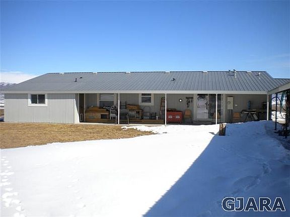Located 6 miles from Meeker on the mesa area, this 5 acre property features a 3 BD, 2 BA home that was built in 2003. The split design has two bedrooms at one end, with the master and den at the other. The kitchen has lots of cupboards, working space and dine in area, along with a formal dining area. A nice covered porch overlooks your backyard. The detached garage fits 2 trucks comfortably with room left to work. A studio apartment with kitchen and bath sets behind the garage, giving it privacy with a separate entrance and parking area. The property has room for grazing and some hay production, with one share of the Miller Creek Ditch included. A large storage building and tack shed.