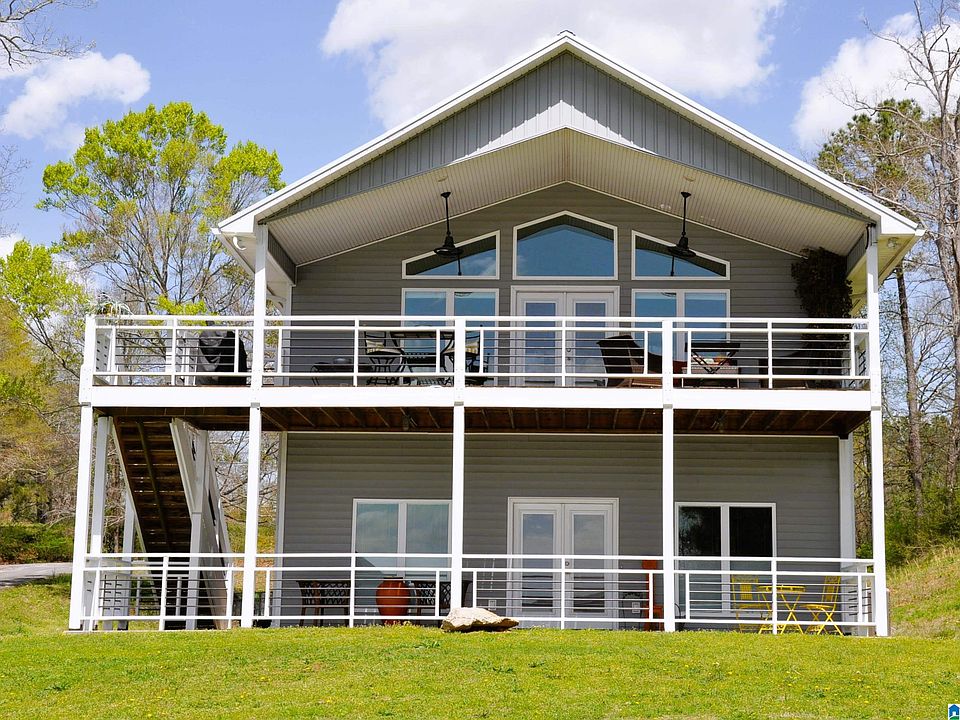 Sit back and enjoy 4th of July fireworks from your Smith Lake Retreat! French doors welcome you into this open concept lake home. The main living area features corner fireplace, custom shelving, and new flooring throughout. Kitchen boasts quartz countertops, black granite double sink, shiplap wall with live-edge walnut shelves, and walk-in pantry with tons of storage! Master BR features walk-in closet with custom shelving and sliding doors, Master BA features double vanity, walk-in shower and makeup area with storage. Second Master features custom molding, walk-in closet, and full BA with marble countertops. Additional BR/office downstairs features stamped concrete flooring, full BA with marble countertops, and french doors leading to private patio! This lake home on 1 acre includes circular driveway and 40'x60' steel shop with 20' peak ceiling, fully insulated walls, two 14' rollup doors, stained concrete flooring, BA with shower, and basketball goal. Call now for your private tour!