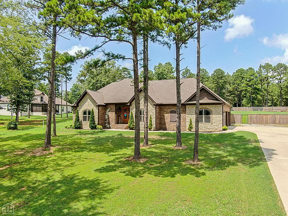 Welcome to Diamond Valley, one of Jonesboro's most sought after subdivisions. Only minutes from town and literally feet from the city limits, you get the best of both when you live here. This 4 bedroom, 2.5 bath all brick home sits on 1.5 acres and custom cedar accents compliment the exterior. At first glance you will notice towering pine trees and long driveway leading to the home. A 6ft. privacy fence encompasses the large back yard and 16X32 heated in-ground salt pool. Evenings are sure to be free of mosquitoes as you enjoy the screened-in back patio. You can fit two full size vehicles in the oversized garage as well as golf cart or lawn mower on the side garage. Walking inside you will find an open concept kitchen/living area with granite countertops, stainless steel appliances and an abundance of cabinets and storage. A coffee/dry-bar area is situated off the kitchen with more cabinet space and large windows look out to the front yard. The living area is centered around the floor to ceiling stacked rock fireplace with a handcrafted reclaimed cypress mantle. Secondary bedrooms featuring jack & jill bathroom and an office is located on the west end of the home. The primary bedroom with en-suite is on the opposite side and provides ample room even for the biggest of King sized beds. The bedroom, en-suite, custom closet, and laundry room all flow into each other and makes getting ready in the mornings and even laundry a breeze. Up the stairs you will find a large bonus room with a reading nook, conveniently on its own HVAC system. Not many homes like this one around for sale. Call today before it's gone! LG Refrigerator, LG Microwave, LG Washer & Dryer to stay with satisfactory offer.