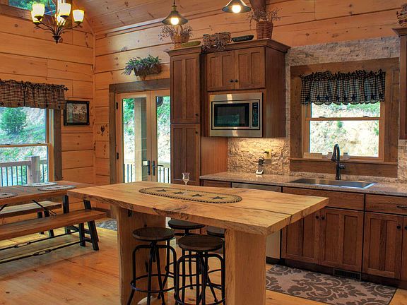 This 3BR-4BA Hand Hewn Solid Log Cabin is 2,800 sq. ft. on 1.18AC and has over 216 feet of pristine rushing frontage on Hemptown Creek and currently has the lost set up as a 4th bedroom. Enjoy nice gentle access to the Fire Pit or relax in your hot tub which overlooks a level grassy area next to Hemptown Creek. Some of the unique features of this solid log cabin are: Hickory cabinets; granite counter tops/w tiled backsplash; custom live edge spalted maple kitchen island; stainless steel appliances; 2 fireplaces w/TN field stone; tongue and groove pine flooring; 2 tiled showers; full finished basement; 2 HVACs; Tankless water heater. Plus, this is only 5 minutes to the grocery store in Blue Ridge! Dont wait too long in this hot market this one will not last long!