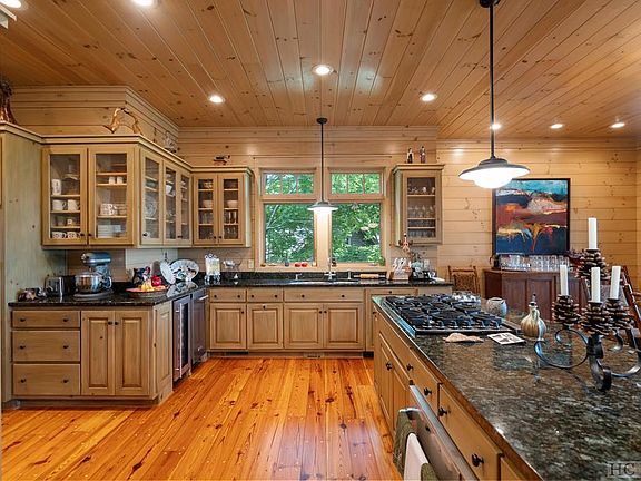 This wonderful family mountain retreat was built by Koenig Builders, a premium Highlands builder in 2006. Koenig was known for timber frame style homes, stacked stone wood burning fireplaces, high end cabinets, attention to detail and lots tongue and groove wood walls. 75 Creekwood Court showcases the attention to craftsmanship that Koenig Builders was known for. This four bedroom home offers a master on the main with oversized master bath, access to the covered deck and two walk in closets. Master bath has a claw foot stand alone tub, large separate shower, two counter height vanities and a separate water closet. Main floor has open concept family room with vaulted ceiling and stacked stone fireplace, oversized dining room and kitchen. Kitchen is well thought out with multiple work areas and high end appliances to make food prep easy. The large kitchen island has storage on both the kitchen side and dining room side. Walk in laundry room is tucked away just to the back of the kitchen. Terrace level has two masters, walk up wet bar, family room with stone fireplace & wine cellar. Media Room is being used as extra bedroom, but can be easily converted back to a media room. All terrace level rooms have direct access to the decks or outside yard. Upper level has small office nook and a large bedroom with private bath. Home has amazing long range view, which could be expanded with some tree removal. Great location within Old Edwards Club @ Highlands Cove as it will have easy access the club house at OEC and GlenCove amenities. Membership to Old Edwards Club is not required but subject to application process and acceptance. Membership is NOT being sold with the home. Old Edwards Club is an 18 hole Tom Jackson designed course; it has two putting greens, driving range, two clay tennis courts, heated mineral pool with cabana, fitness center and grill room. GlenCove is the newest addition to the Old Edwards hospitality group and is a Wellness community.