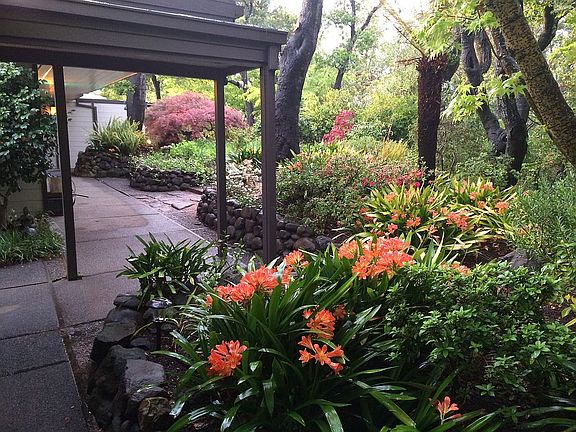 Accessible exclusively through Ross's Winship Park, this elegant mid-century modern home sits at the crest of this gorgeous neighborhood and has spectacular views of Mt. Tam, the seminary and Ross Valley. Home includes huge LR/great room, formal dining room, library/office, 3 bedrooms, 2.5 baths-one ADA, and a two room/one bath guest house. Lush gardens, pool, patios and decks. One level living, perfect privacy - all with incredible views.