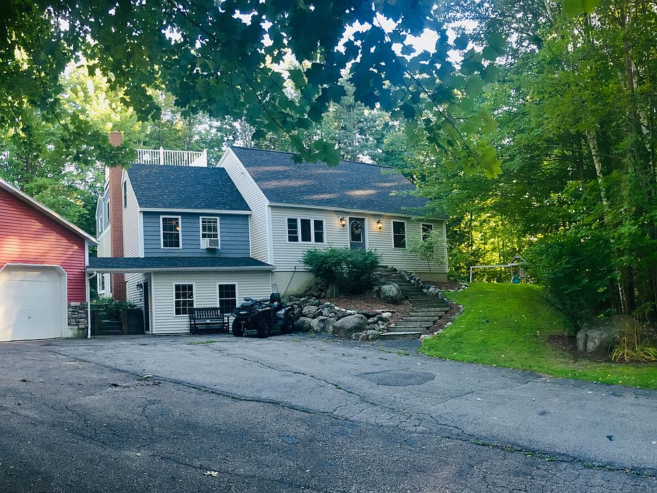 This 4 bedroom, 4 bath Contemporary Cape is situated on a private 1.72 acres within a quiet circle in Gilford, NH, just up the road from Lake Winnipesaukee. Centrally located, this home is just minutes from the schools, and a couple miles from the supermarkets and Lowe's. Fully renovated in 2007, the wide open floor plan is outfitted with granite and top-notch cabinetry throughout the home. A $100,000+ elaborate addition was done in 2012, including a cathedral ceiling family room filled with windows, a large back deck, a guest room, and a roof deck!!!! The master suite has a walk-in closet and a jacuzzi tub in the master bathroom. On the second floor there are two more bedrooms, with a full bath in between. The finished basement has 2 full-size windows to let in the natural light, a bathroom, a wet bar, and it's own entrance to the oversized 2-car garage. It is suitable for an in-law apartment, large exercise room, or entertainment room. This home has a large, private back yard, with fruit trees and plenty of space for a garden! This is a beautiful home for the right family! Serious inquiries only please. Seller will not be paying commission.