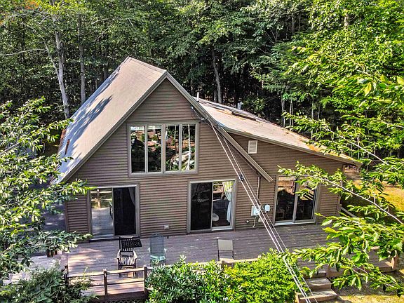 Perched on a rocky ledge, with large moss covered boulders (Glacial erratics) scattered about the naturally manicured landscape, this charming three bedroom home, located within the coveted Deep Cove neighborhood, is truly one of a kind. South facing water views and a perpetual, gentle breeze emanating from Sebago Lake's Jordan Bay, combine to create a wonderful sense of tranquility and natural beauty. Cathedral ceiling, loft space, master bedroom suite, abundant natural light- tons of potential!