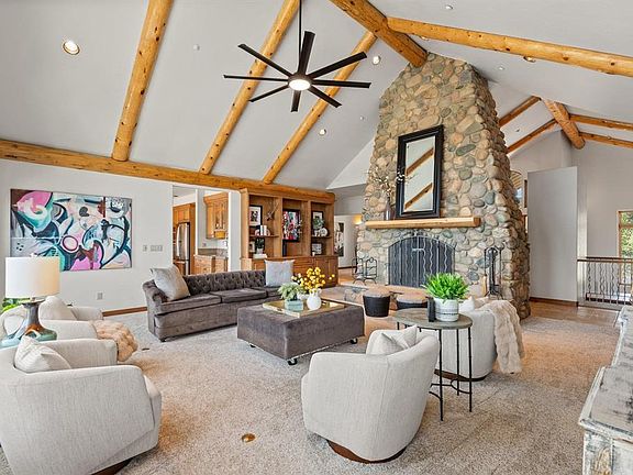 This stunning custom home in Trappers Crossing is ideally situated on 17.5 pristine treed acres, offering breathtaking views of the La Plata Mountains and abundant wildlife. Perfectly positioned to capture incredible sunrises, spectacular sunsets, and the clearest night skies, this home is located just 15 minutes on paved road from historic downtown Durango and moments away from the Lake Nighthorse recreation area. The expansive property spans 4,772 square feet, featuring 5 bedrooms, 3.5 bathrooms, a sauna, and a spacious 3-car garage (over 1,000 square feet) with high ceilings designed, allowing for the addition of a lift. This residence offers ample space and modern amenities, ideal for family living, working from home, and entertaining. Recent enhancements include a reconfigured outside deck, new landscaping with an irrigation system, a new firepit, a waterfall feature, a newly fenced backyard, a complete interior repaint, new tile flooring on the lower level, and upgraded plumbing and lighting fixtures. Additionally, the home boasts a whole-house water filter, radiant in-floor heating with 4 zones upstairs and 3 zones downstairs, and pre-wiring for a security system, hot tub, and full-home surround sound. Upon entering, you are welcomed by a bright and inviting living room with vaulted ceilings, exposed wooden beams, and large windows framing spectacular mountain views. The lodge-like river rock wood-burning fireplace adds a cozy ambiance. The heart of the home's well-appointed kitchen features a granite island, a breakfast dining area with deck access, stainless steel appliances, ample cabinetry, a wet bar, and a spacious walk-in pantry. The formal dining room, adorned with exposed wooden beams, is conveniently located behind the kitchen. On the main level, a luxurious primary suite offers a spacious bedroom, a walk-in closet, and a bathroom with a double vanity and walk-in shower. The suite has access to a brand-new deck with a metal railing and stainless-steel cable, which enhances outdoor living with vibrant mountain vistas. The lower level, with 10-foot ceilings, encompasses an enormous family room perfect for games or TV, four bedrooms (one used as an office), two bathrooms, a sauna, a craft room with extra storage, three storage closets, and a mechanical room. Each living area offers direct access to the back deck or concrete patio. The fenced backyard features a new paver patio with a fire pit and a tranquil waterfall below. Living in Trappers Crossing offers a unique blend of privacy and community, making this mountain home a rare find. Take advantage of the opportunity to experience this property's extraordinary views and unmatched tranquility.