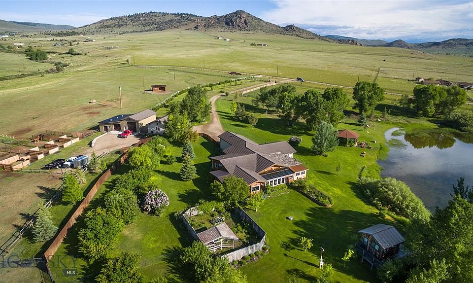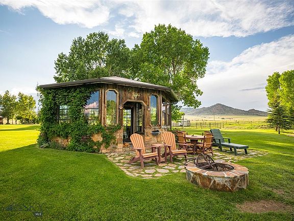 This peaceful retreat on 21+ acres with no covenants is centered around an idyllic pond with a stunning mountain backdrop located just minutes from the Madison River and quant town of Ennis. The improvements on this extraordinary property include a 3bed/2bath home completely remodeled in 2007 with an attached 2bed/1bath guest suite with a kitchenette, 4+garages, a free standing octagonal enclosed conservatory, a finished shop with covered patio, a dry summer cabin w/ wrap around deck, a greenhouse connecting the home to the guest suite, 3 horse pastures, hay storage, fenced in garden and more. The home features an open floor plan with slate flooring, all custom built cabinetry, corian counters in kitchen, an oversized master suite with an exercise studio, bay windows, sunrooms and private porches. This property lends itself to be a great venue for weddings, flyfishing clinics, artist/yoga retreats or just enjoy the wildlife in this serene parklike setting. Water rights convey.