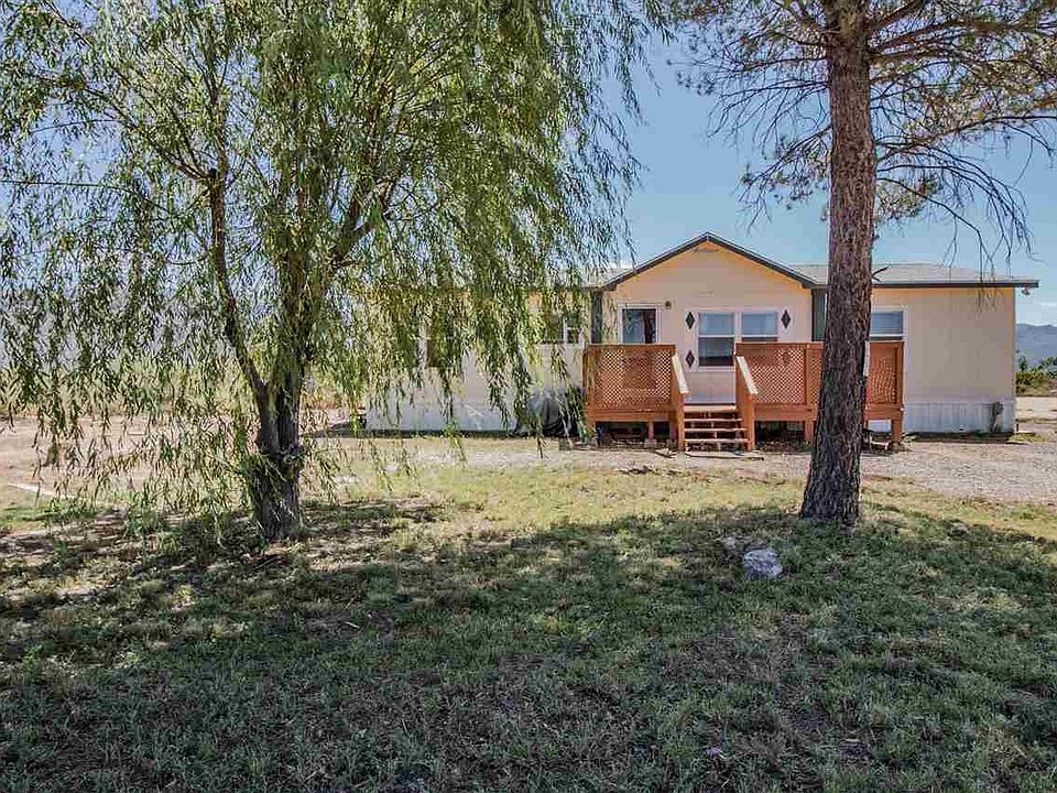 Refrigerated air! Well-maintained home on 5 acres, nice shade trees, wonderful mountain views! Brand new roof. NICE BIG kitchen, countertop space and cabinets galore! 3 bdrm 2bth, fresh paint. Nice master with large garden tub and separate shower. Newly stained deck. 2 wells! Most recent well drilled in 2010 read at 25gpm yield. Great price!