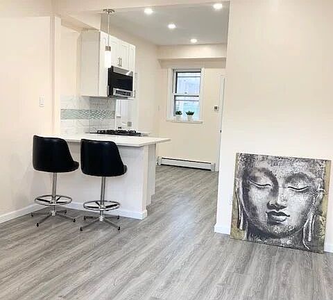 Gut renovated 2bed/1bath unit. Hardwood floors throughout, new white kitchen with stainless steel appliances and breakfast bar, beautiful back-splash, quartz countertops, tons of windows, high ceiling with high heads, gorgeous bathroom with a stand up shower and glass doors, outdoor space and a shared yard. Close to shopping, restaurants, park, school and only 2 blocks to 22nd St lightrail that takes you to NYC. Pets are allowed.