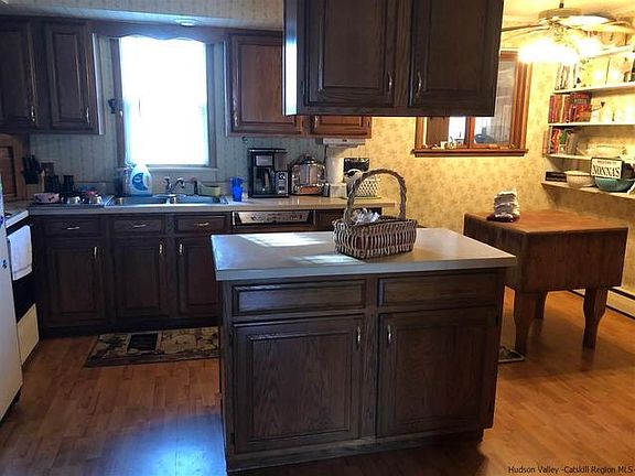 Wonderful Brick Ranch/Cape style home situated on a spacious lot in Kingston on a dead end road with easy access to everything you can imagine. The first floor includes a large living room with a two sided fireplace, Kitchen with adjoining large DR, 2 bedrooms, 2 full baths and a 22 x 8 sq. ft. all season room with skylights and pine bead board. Sliders lead you right out to the backyard with plenty of room to entertain family and friends. This home also has hardwood floors in the main rooms and Vinyl replacement windows. There is a finished second story with 2 large rooms including the 3rd bedroom. A breezeway off of the kitchen leads to an attached over sized 1-car garage. The lower level is finished and what a bonus this room is with a built in bar perfect to gather with friends to watch the game or just hang out. The extra 600 Sq. Ft. is reflected in the total sq. footage in the listing. Outside there are beautiful park like grounds with two shed/baby barns for extra storage.