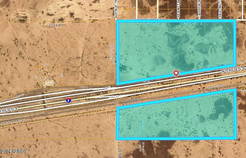 150 acres. Fronts on the I-8 frontage roads on both sides of the interstate. Right off the interchange! Electricity appears to be available on both sides! Relatively flat land with little hills on N side portion. No flood zones. Either side,, just a minute of the interchange. So much potential here at only $1,250 PA! And OWNER WILL CARRY!! Call NOW to make a deal!!! N side portion: 32.837118, -113.348916. S side portion here: 32.835185, -113.352056