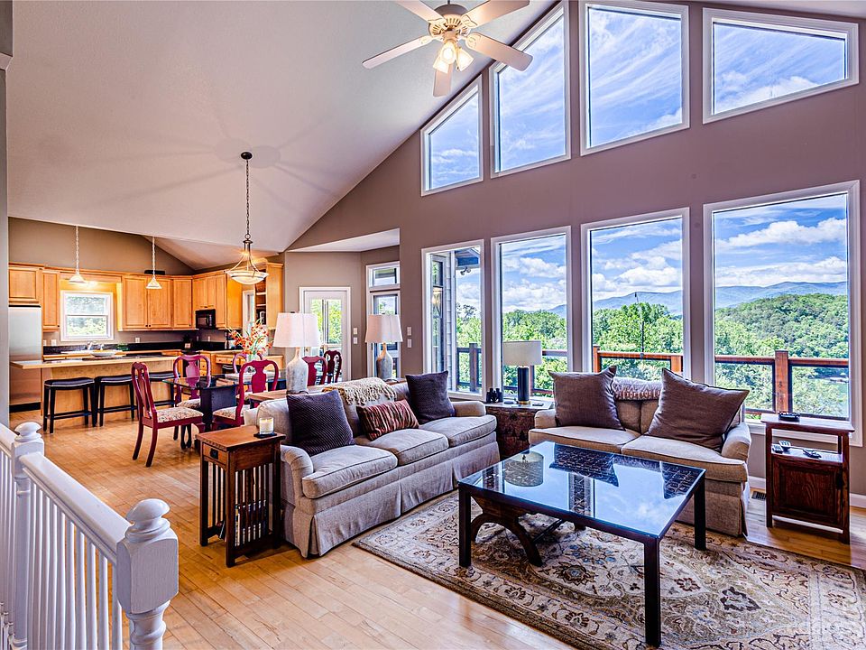 In an emerald cove in gated Fontana Lake Estates is this turnkey home offering casual elegance with stunning, treetop views of Fontana Lake & Nat'l Park. Flooded with natural light shining through the peaked windows with captivating views. It sits on a private 4 ac lot at the end of the road. The main level offers a great room, has one of the woodburning FP’s with plenty of kitchen storage, induction stove, a wet bar & wine cooler. The Master Suite also has a FP, walks out to the deck & has an ensuite bath, jet tub, walk-in closet, shower. The 2nd BR, bath & laundry are also on the main floor, as is the inviting screened porch with lake views walking out to a huge deck & grilling deck. The lower level has a 2nd living area, a large patio & grassy yard. This protected wilderness community was designed to complement the beauty of the natural environment & provide a luxurious lakefront lifestyle with a marina, hiking trails & day docks with gazebos for your enjoyment. Move-in ready