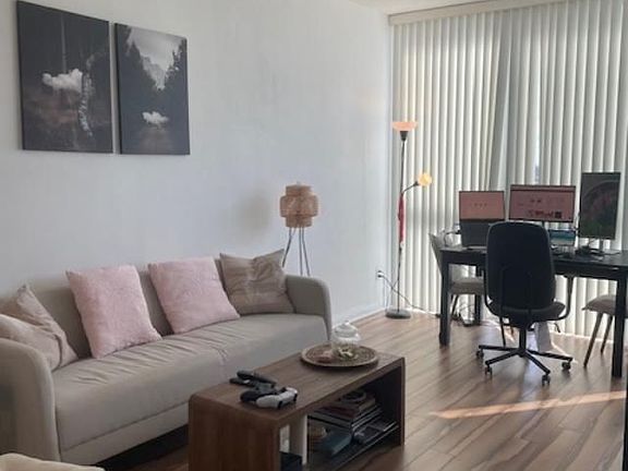 Welcome to Crystal Towers by Pinnacle. Enjoy Unobstructed Panoramic Views from this Chic 654 sq.ft., 1 Bedroom plus den. From the Elegant Finishes throughout this Suite, to the State of the Art Facilities, you will not be disappointed. The Bedroom flows through his and hers closets to the Semi Ensuite Bathroom with Floor to Ceiling Shower Stall with Designer finishes. Open Concept Kitchen with S/S Appliances, Quartz Counters, Breakfast Bar. Gorgeous Laminate Floors in Liv/Din/Den,. Perfect for a young professional or couple. Complete with a Parking and Locker. Building boasts Lobby Sports Lounge, Yoga, Indoor Pool, Outdoor Terrace w/BBQ Area, Theatre and so much more.... TTC at Door. Eglinton Crosstown LRT soon to be completed within walking distance. Close to shops and restaurants. Minutes to 401 and 403.