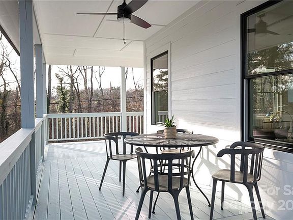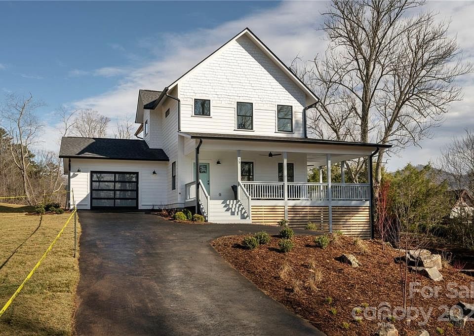 A stylish, sensibly crafted green built charmer by Beach Hensley Homes is conveniently located in North Asheville beside the entrance to Thoms Estate. Welcoming outdoor living, its inviting and spacious covered wrap-around porch overlooks both the Asheville Country Club golf course and a generous, flat backyard. A bright, open floor plan on the main level features white oak hardwood floors, a private half-bath, GE Profile stainless appliances including gas range, quartz countertops, a large island, walk-in pantry, and a 1-car garage. The upper level features all 3 bedrooms and 2 full baths along with the laundry room (washer and dryer convey). The primary hosts an en-suite bath with double vanities, a walk-in glass-enclosed shower and a water closet plus a roomy walk-in closet. Taxes TBD (current tax card shows pre-construction value). HERO/HERS and Green Built ratings TBD (cert to be provided to future homeowner upon receipt by builder). Listing agent is a principal in selling entity.