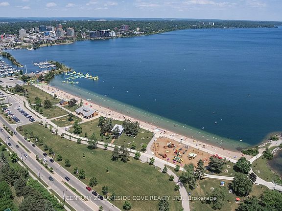 Welcome to Lakeside Living in Barrie, where Views of Lake Simcoe, Await You along the Picturesque Trail of Life. Immerse Yourself in Delightful Strolls that Lead You to the Pristine Beach, Lush Parks, and a Vibrant Waterfront, All Mere Steps from Your doorstep. With the Bustling Downtown Amenities Just a Stone's throw Away, this Location Truly Offers the Best of Both Worlds. Indulge in a Life of Luxury within the Adjoining Complex, which Features a State-of-the-Art Gym and a Welcoming Indoor Pool. This Turnkey Facility is Surrounded by Beautifully Manicured Grounds and Boasts a Secure Entry that Greets You with an Impressive Grand Foyer, Seamlessly Blending Modern Elegance with Cozy Comfort. Step Inside to Discover a Charming Galley Kitchen Adorned with Exquisite Tiled Flooring and a convenient pantry for all your culinary needs. You'll appreciate the practicality of an in-unit washer and dryer, complemented by a Thoughtfully Designed Laundry and Storage Closet. The Interior Strikes the Perfect Balance of Cozy Sophistication, Featuring Efficient Gas Heating, Air Conditioning, and a Temperature Controller that Ensures Your Comfort Throughout the Seasons. Savour the Serene Views from Your Private Balcony, Where the Gentle River Meanders Toward the Lake, Just a Short Stroll from the Sandy Beach. The Ensuite Bath Delights with Both a Four-Piece and a Three-Piece Bathroom, Offering Convenience for You and Your Guests. Meanwhile, the Second Bedroom is Bathed in Radiant Natural Light from its Oversized Windows, Creating an Inviting Sanctuary for Relaxation. With the Boardwalk Easily Accessible from the Service Entry, Enjoy Convenient Access for Pets and Deliveries through the Back Door, While the Nearby Trail of Life Beckons You to Explore the Beauty of Nature. Experience the Lifestyle You've Always Dreamed of at Lakeside Living, Where Every Day Feels Like a Getaway.