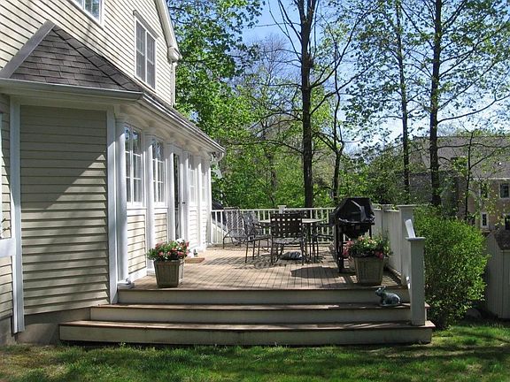 Nestled on almost half an acre in a sought after in-town neighborhood this picturesque Colonial has been lovingly renovated and expanded. You’ll feel right at home in the charming living room with builtins and a fireplace. The expansive kitchen features granite countertops, high-end appliances and it opens to a large family room. French doors lead to a lovely deck, the perfect spot for enjoying your morning coffee. Upstairs you’ll find a large master bedroom with ensuite bath and cathedral ceilings, plus three additional bedrooms. A walk out lower level with exercise room and playroom complete this pretty picture. And all of it just a short walk to town, schools and parks.