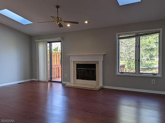 Beautiful updated townhome with two master suites. Foyer entry opens to dining room & light filled living room with vaulted ceiling & skylights. Fireplace and slider leads to rear deck. Eat-in kitchen features granite counter, subway tile backsplash, new SS appliances & re-faced kitchen cabinets. Freshly painted with laminate flooring on both levels. Bathrooms are updated new toilets & resurfaced tub. Very desirable location for schools and amenities. Enjoy the carefree lifestyle in Sun Ridge which offers in-ground pool, tennis, basketball court, playground & 26 acres of open space. Close to shopping & historic downtown Flemington. Owner will consider 1 small dog (under 10 lbs.) or 1 cat with a $50 increase in monthly rent. Tenant must fill out an NTN application. Fireplace is not to be used.