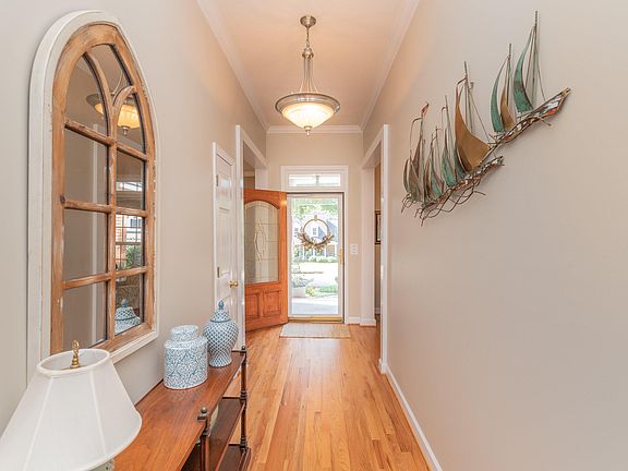 A spacious rocking-chair front porch invites you in, leading to a wide, welcoming foyer with tall ceilings that create an open and elegant first impression. Just off the foyer is a formal dining room, perfect for gatherings and special occasions.