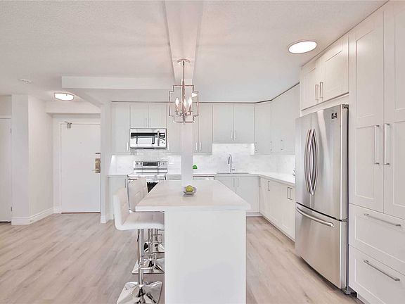 Totally Renovated Unit With Unobstructed View. Open Concept Layout With Gorgeous Modern Kitchen. Brand New Ss Appliances, Central Island, Quartz Countertop With Marble Backsplash. New Laminate Throughout. Master Bedroom With Walk In Closet And Ensuite Bathroom. Steps To All Conveniences. Move And Enjoy.