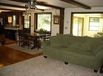 LOOKING FOR PRIVACY? Set up on a hill, overlooking a country road and a young orchard, this beautiful raised-ranch is your perfect retreat! Entertain or just relax in the wonderful open living area featuring beautiful wood floors and energy-efficien t pellet stove! Enjoy the views of the private back yard from the sun-splashed family room or from the serenity of the beautiful deck! In addition to the private setting, this home is a commuter's dream, minutes to major routes and shopping! A gem!