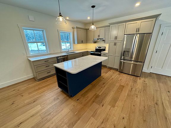 Welcome to Estes Landing! This brand new flat style home with a 5+ Star energy rating is ready for you to move in. You will find great attention to detail and high quality finishes throughout. The open floor plan is ideal for family gatherings or entertaining guests. This 1-story home features a primary bedroom suite with a walk-in closet. There are two more bedrooms, another full bath, stacked laundry closet, and an attached 2-car garage. The entire home is equipped with a multi-zone heat pump and a pair of Lunos E2 ventilation fans to keep you warm in the winter and cool in the summer, al while being ultra-efficient. The living room also has a pellet stove for additional warmth and ambiance. Estes Landing combines desirable single family home living with the convenience of condominium-style exterior grounds maintenance and services. The best of both worlds!