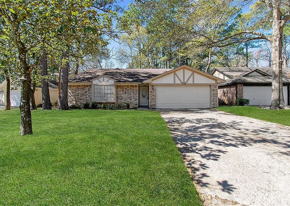 This 1341 square foot single family home has 3 bedrooms and 2.0 bathrooms. This home is located at 75 Fallshire Dr, Spring, TX 77381. Home has just been professionally painted from top to bottom, new waterproof laminate flooring throughout. Newer cabinets, appliances and granite countertops in the kitchen. Great level backyard with a free standing deck. Pets are welcome. No smoking allowed