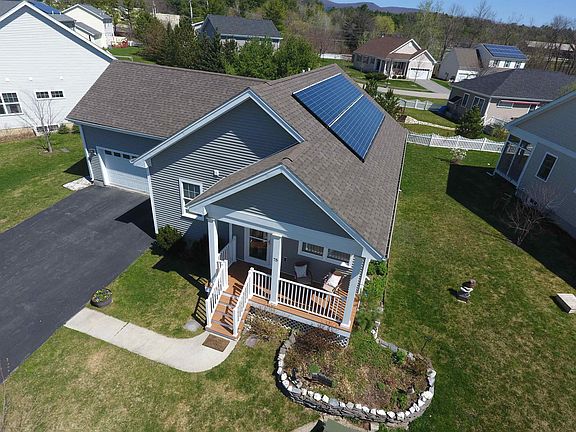 This seven year old home has been beautifully maintained and is in a lovely neighborhood. It features 3 bedrooms and 2 1/2 baths. The attached 2 car garage and the beautiful screened porch add to the desirability of this home. The roof mounted solar panels provide enough energy so that the electric bills for this home average $100 per year. The home is very well insulated resulting in a gas bill that averages $600 per year. There are many extras in this home, such as hard wood floors in the main living areas, granite counter tops, 9 ' ceilings, lots of basement storage, as well as a nice work bench area. This is a beautiful home in a great location!