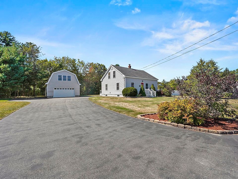 This beautiful 3-bedroom, 1.5-bath cape has been lovingly updated over the last 11 years and is ready for its next owner! Enter inside to a sunny mudroom with a 1/2 bath and sliding glass doors leading to the expansive deck and private back yard. The open floor plan leads into a modern kitchen with concrete countertops, center island, s/s appliances, tile backsplash, and walk-in pantry, and features a living room with recessed lighting. The main level also includes a full bath with a jetted soaking tub, tiled shower, and linen closet, along with a spacious bedroom and first floor laundry. Upstairs offers 2 generously sized bedrooms with brand new flooring and ample closet space. Outside boasts a 2-car garage with a massive heated and cooled bonus room above featuring vaulted ceilings just waiting for your finishing touches-perfect for a studio, office, or guest space. All this in an unbeatable commuter location just minutes to 93 and close to shopping, dining, and the Derry Rail Trail. Come see it today!