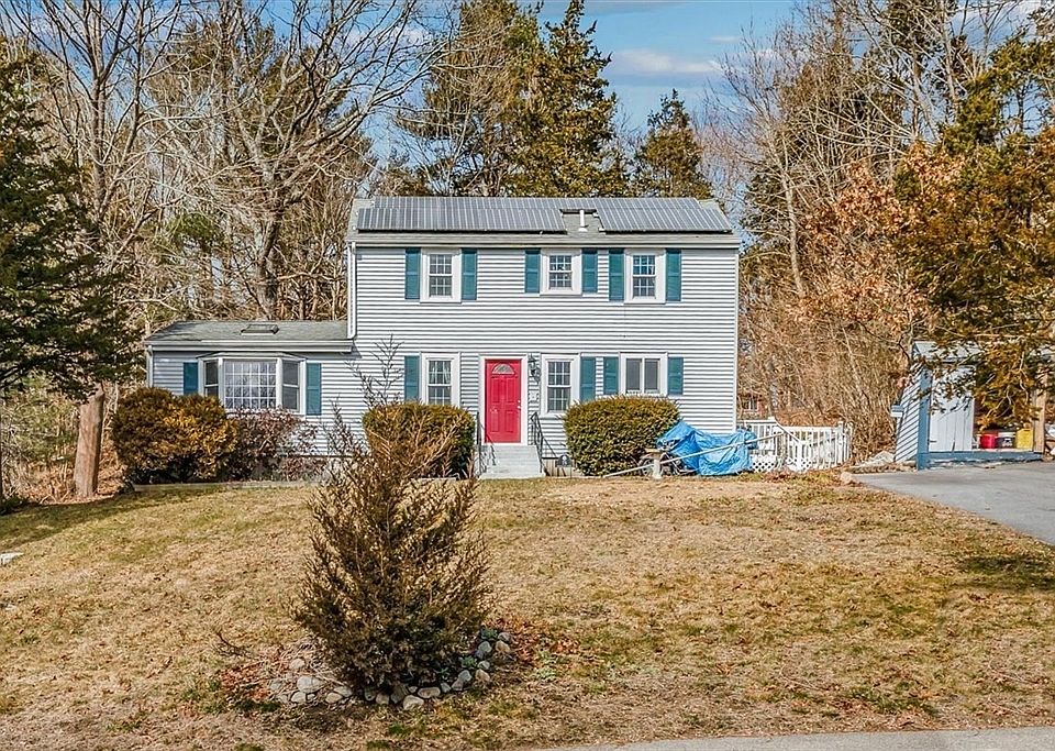 Perched on a hillside in a fabulous Marshfield neighborhood, this 3-bedroom, 2-bath home will need cosmetic updates inside and out but is well worth the investment. Terrific side street location less than a half mile from the Governor Winslow elementary school, 2 miles from the Brant Rock esplanade, and 2 miles from iconic Duxbury Beach! The main level features living and family rooms with semi-cathedral ceilings and skylights, a huge master bedroom, dining room, kitchen, and full bath. There are two more bedrooms and a second full bath upstairs, plus a full unfinished basement for storage and a small side deck off the kitchen. And the seller will pay off the solar panel lease in full at closing, giving you years of affordable and environmentally friendly energy. If you’re looking for something beyond a typical cookie-cutter Colonial, this could be the home for you!
